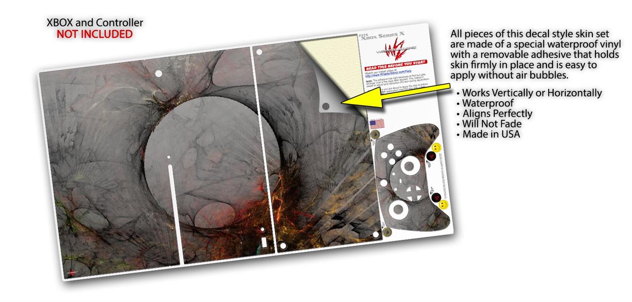 • XBOX SYSTEM NOT INCLUDED - Skin bundle covers XBOX Series X Console front and sides and the face of a single Controller. DOES NOT FIT Xbox One systems.