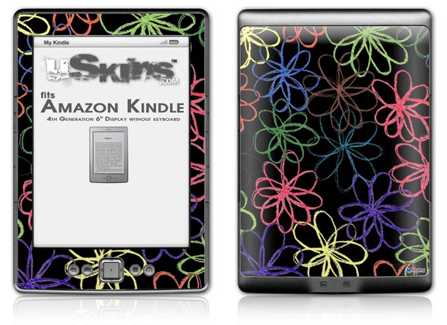 Kearas Flowers on Black - Decal Style Skin (fits 4th Gen Kindle with 6inch display and no keyboard)