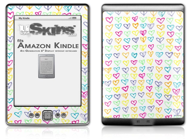 Kearas Hearts White - Decal Style Skin (fits 4th Gen Kindle with 6inch display and no keyboard)