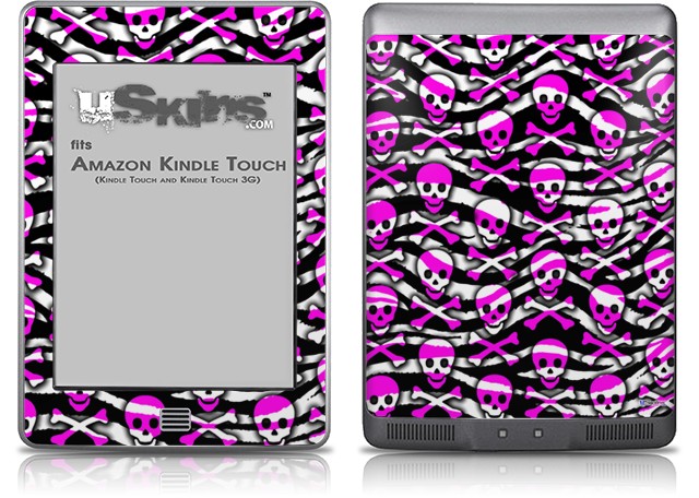 Zebra Pink Skulls - Decal Style Skin (fits Amazon Kindle Touch Skin)