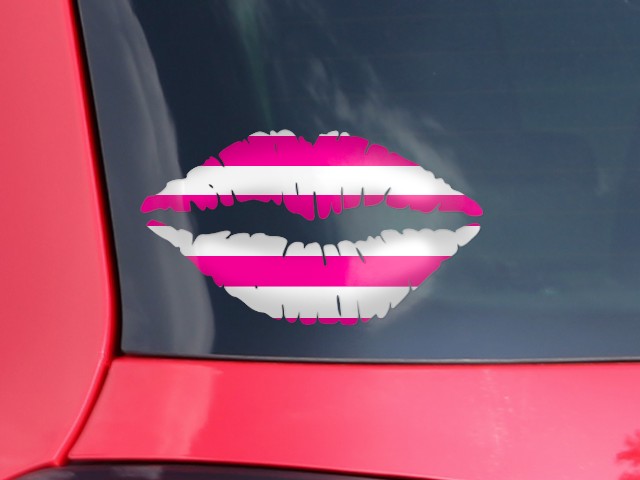 Lips Decal 9x5.5 Kearas Psycho Stripes Hot Pink and White
