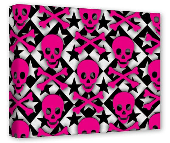Gallery Wrapped 11x14x1.5 Canvas Art - Pink Skulls and Stars
