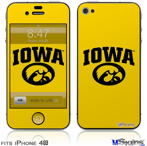 iPhone 4S Decal Style Vinyl Skin - Iowa Hawkeyes Tigerhawk Oval 01 Black on Gold