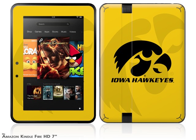 Iowa Hawkeyes Herkey Black on Gold Decal Style Skin fits 2012 Amazon Kindle Fire HD 7 inch