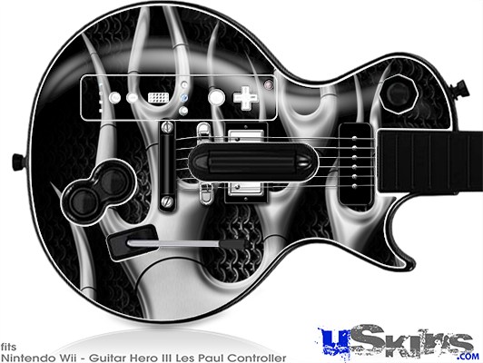 Guitar Hero III Wii Les Paul Skin - Metal Flames Chrome
