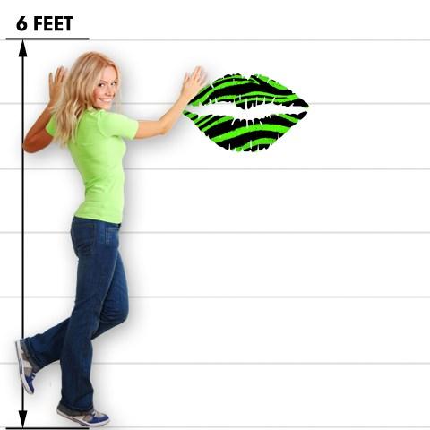 Zebra Green - Kissing Lips Fabric Wall Skin Decal measures 24x15 inches