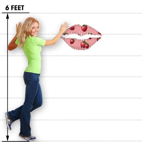 Strawberries on Pink - Kissing Lips Fabric Wall Skin Decal measures 24x15 inches