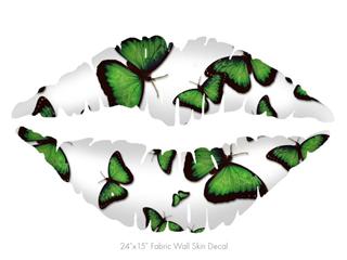 Butterflies Green - Kissing Lips Fabric Wall Skin Decal measures 24x15 inches