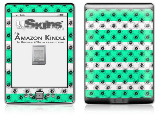 Kearas Daisies Stripe Sea Foam - Decal Style Skin (fits 4th Gen Kindle with 6inch display and no keyboard)