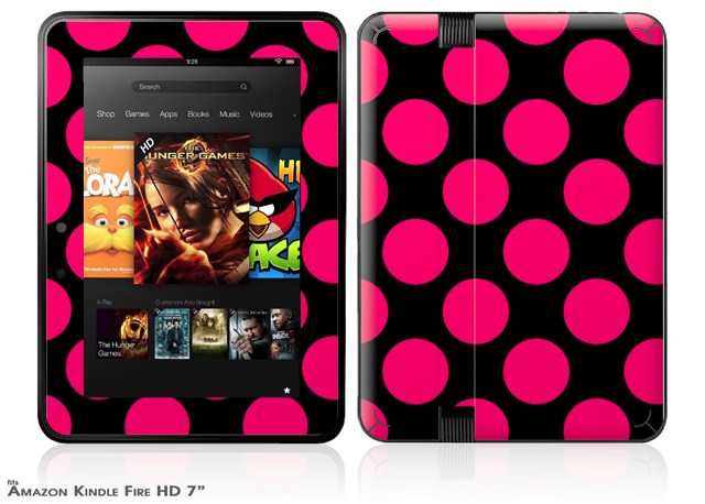 Kearas Polka Dots Pink On Black Decal Style Skin fits 2012 Amazon Kindle Fire HD 7 inch