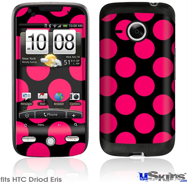 HTC Droid Eris Skin - Kearas Polka Dots Pink On Black