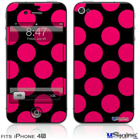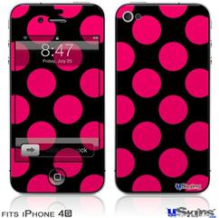 iPhone 4S Decal Style Vinyl Skin - Kearas Polka Dots Pink On Black