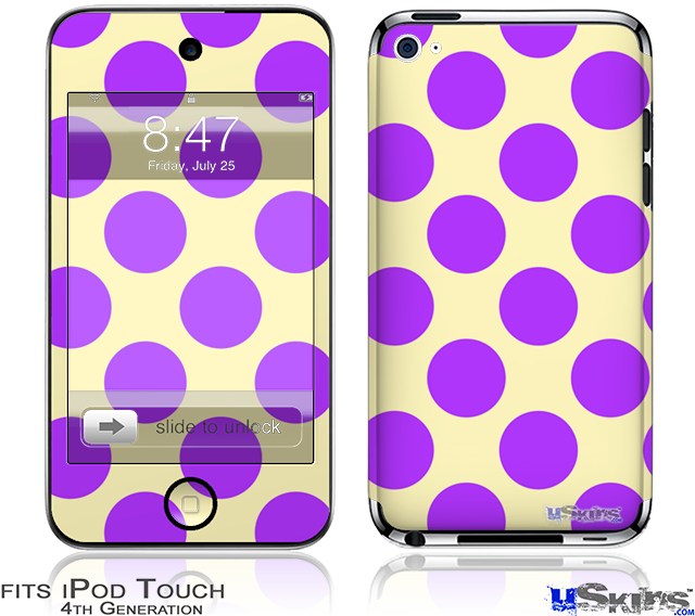 iPod Touch 4G Decal Style Vinyl Skin - Kearas Polka Dots Purple On Cream