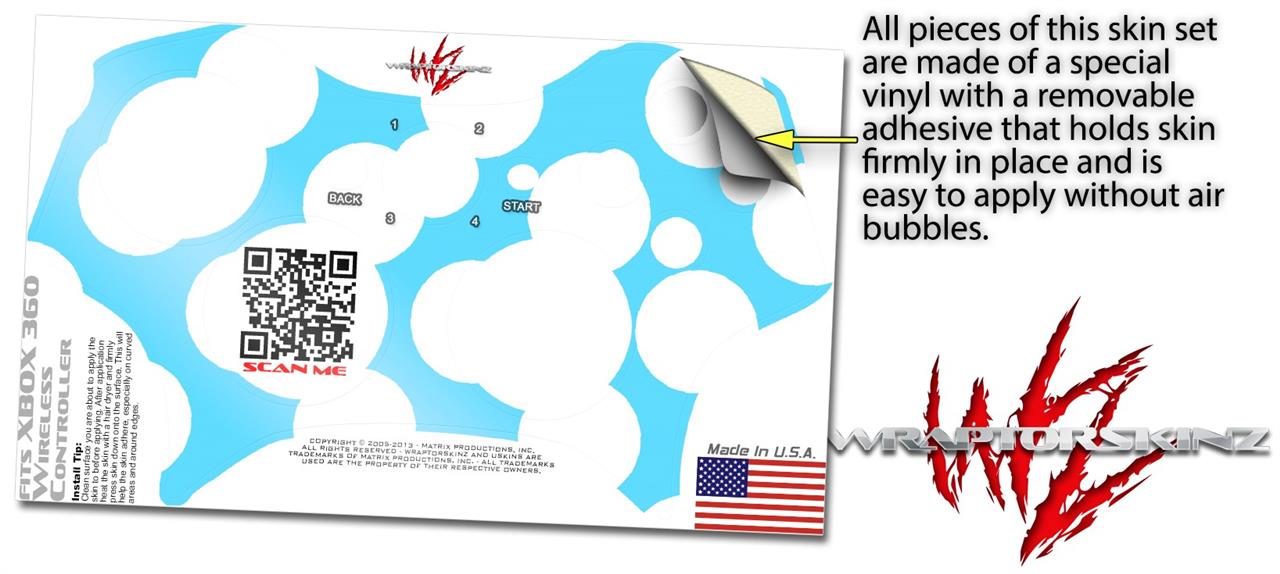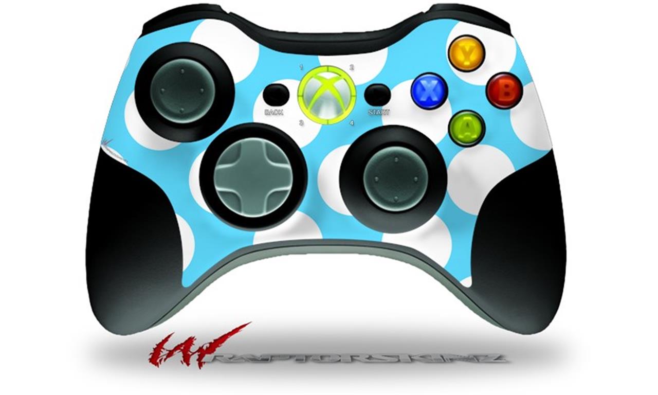 XBOX 360 Wireless Controller Decal Style Skin - Kearas Polka Dots White And Blue (CONTROLLER NOT INCLUDED)