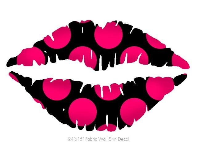 Kearas Polka Dots Pink On Black - Kissing Lips Fabric Wall Skin Decal measures 24x15 inches