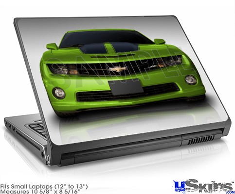 Laptop Skin (Small) - 2010 Chevy Camaro Green - Black Stripes