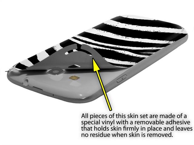 • Decal style vinyl skin covers front and back of Samsung Galaxy S III S3 phone.