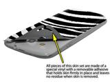 uSkins™ are self adhering vinyl skins that help prevent scratches and look great doing it. Unlike bulky silicon, plastic or metal cases and faceplates, uSkins are designed to be thin and very tough. uSkins are a composite of two layers of commercial grade materials. The bottom layer is a soft, flexible vinyl with a special removable adhesive that is easily positioned, applied without air bubbles, and effortlessly removed without leaving a sticky residue. Next we print the bottom layer with UV protected, fade resistant inks that deliver superb photo quality designs in vibrant colors. Finally we bond a professional grade laminate over the entire skin adding a glossy protective finish.