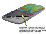 uSkins™ are self adhering vinyl skins that help prevent scratches and look great doing it. Unlike bulky silicon, plastic or metal cases and faceplates, uSkins are designed to be thin and very tough. uSkins are a composite of two layers of commercial grade materials. The bottom layer is a soft, flexible vinyl with a special removable adhesive that is easily positioned, applied without air bubbles, and effortlessly removed without leaving a sticky residue. Next we print the bottom layer with UV protected, fade resistant inks that deliver superb photo quality designs in vibrant colors. Finally we bond a professional grade laminate over the entire skin adding a glossy protective finish.