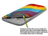 uSkins™ are self adhering vinyl skins that help prevent scratches and look great doing it. Unlike bulky silicon, plastic or metal cases and faceplates, uSkins are designed to be thin and very tough. uSkins are a composite of two layers of commercial grade materials. The bottom layer is a soft, flexible vinyl with a special removable adhesive that is easily positioned, applied without air bubbles, and effortlessly removed without leaving a sticky residue. Next we print the bottom layer with UV protected, fade resistant inks that deliver superb photo quality designs in vibrant colors. Finally we bond a professional grade laminate over the entire skin adding a glossy protective finish.