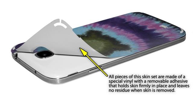 • Decal style vinyl skin covers front and back of Samsung Galaxy S4 phone.