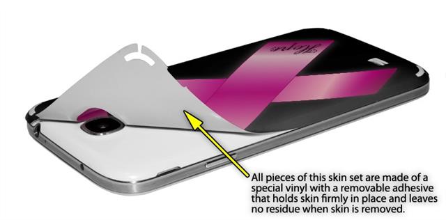 • Decal style vinyl skin covers front and back of Samsung Galaxy S4 phone.