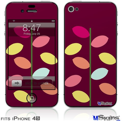 iPhone 4S Decal Style Vinyl Skin - Plain Leaves On Burgundy