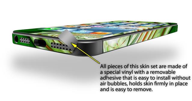 uSkins™ are self adhering vinyl skins that help prevent scratches and look great doing it. Unlike bulky silicon, plastic or metal cases and faceplates, uSkins are designed to be thin and very tough. uSkins are a composite of two layers of commercial grade materials. The bottom layer is a soft, flexible vinyl with a special removable adhesive that is easily positioned, applied without air bubbles, and effortlessly removed without leaving a sticky residue. Next we print the bottom layer with UV protected, fade resistant inks that deliver superb photo quality designs in vibrant colors. Finally we bond a professional grade laminate over the entire skin adding a glossy protective finish.