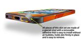 uSkins™ are self adhering vinyl skins that help prevent scratches and look great doing it. Unlike bulky silicon, plastic or metal cases and faceplates, uSkins are designed to be thin and very tough. uSkins are a composite of two layers of commercial grade materials. The bottom layer is a soft, flexible vinyl with a special removable adhesive that is easily positioned, applied without air bubbles, and effortlessly removed without leaving a sticky residue. Next we print the bottom layer with UV protected, fade resistant inks that deliver superb photo quality designs in vibrant colors. Finally we bond a professional grade laminate over the entire skin adding a glossy protective finish.