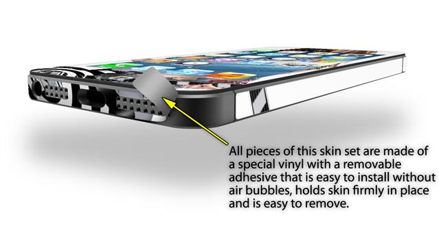 uSkins™ are self adhering vinyl skins that help prevent scratches and look great doing it. Unlike bulky silicon, plastic or metal cases and faceplates, uSkins are designed to be thin and very tough. uSkins are a composite of two layers of commercial grade materials. The bottom layer is a soft, flexible vinyl with a special removable adhesive that is easily positioned, applied without air bubbles, and effortlessly removed without leaving a sticky residue. Next we print the bottom layer with UV protected, fade resistant inks that deliver superb photo quality designs in vibrant colors. Finally we bond a professional grade laminate over the entire skin adding a glossy protective finish.