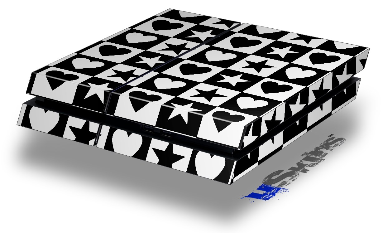 Vinyl Decal Skin Wrap compatible with Sony PlayStation 4 Original Console Hearts And Stars Black and White (PS4 NOT INCLUDED)