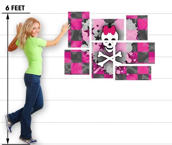 Princess Skull Heart - 7 Piece Fabric Peel and Stick Wall Skin Art (50x38 inches)