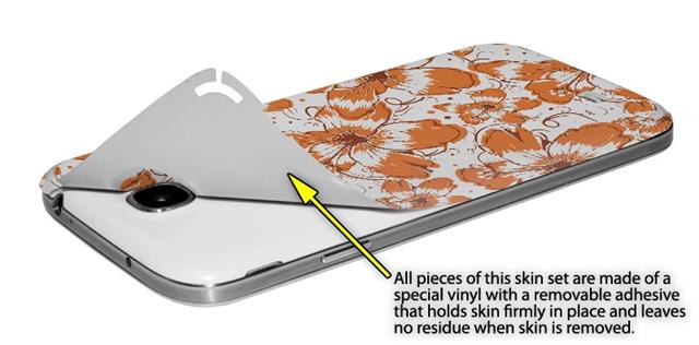 • Decal style vinyl skin covers front and back of Samsung Galaxy S4 phone.