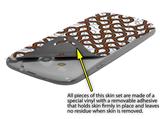 uSkins™ are self adhering vinyl skins that help prevent scratches and look great doing it. Unlike bulky silicon, plastic or metal cases and faceplates, uSkins are designed to be thin and very tough. uSkins are a composite of two layers of commercial grade materials. The bottom layer is a soft, flexible vinyl with a special removable adhesive that is easily positioned, applied without air bubbles, and effortlessly removed without leaving a sticky residue. Next we print the bottom layer with UV protected, fade resistant inks that deliver superb photo quality designs in vibrant colors. Finally we bond a professional grade laminate over the entire skin adding a glossy protective finish.