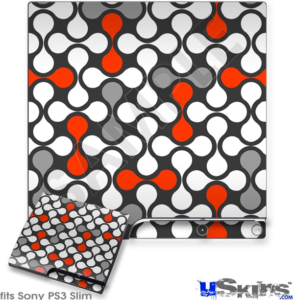 Decal Skin compatible with Sony PS3 Slim Locknodes 05 Red