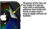 uSkins™ are self adhering vinyl decal style skins and are a great way to add a new look to your protective case. uSkins are a composite of two layers of commercial grade materials. The bottom layer is a soft, flexible vinyl with a special removable adhesive that is easily positioned, applied without air bubbles. Next we print the bottom layer with UV protected, fade resistant inks that deliver superb photo quality designs in vibrant colors. Finally we bond a professional grade laminate over the entire skin adding a glossy protective finish.
