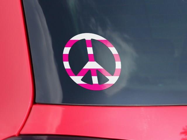 Psycho Stripes Hot Pink and White - Peace Sign Car Window Decal 6 x 6 inches