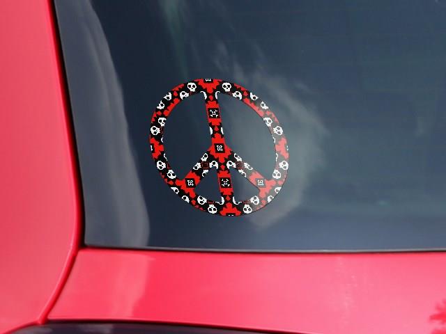 Goth Punk Skulls - Peace Sign Car Window Decal 6 x 6 inches