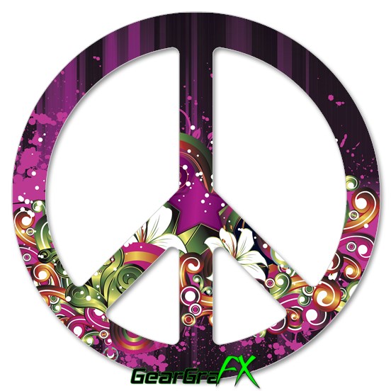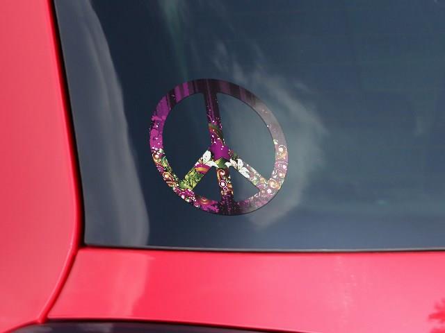 Grungy Flower Bouquet - Peace Sign Car Window Decal 6 x 6 inches