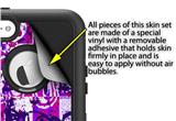 uSkins™ are self adhering vinyl decal style skins and are a great way to add a new look to your existing protective case. uSkins are a composite of two layers of commercial grade materials. The bottom layer is a soft, flexible vinyl with a special removable adhesive that is easily positioned, applied without air bubbles. Next we print the bottom layer with UV protected, fade resistant inks that deliver superb photo quality designs in vibrant colors. Finally we bond a professional grade laminate over the entire skin adding a glossy protective finish.