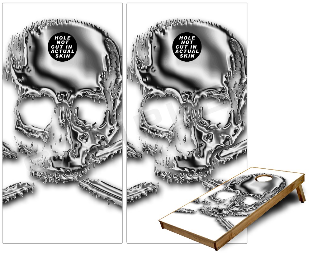 Cornhole Game Board Vinyl Skin Wrap Kit - Chrome Skull on White fits 24x48 game boards (GAMEBOARDS NOT INCLUDED)