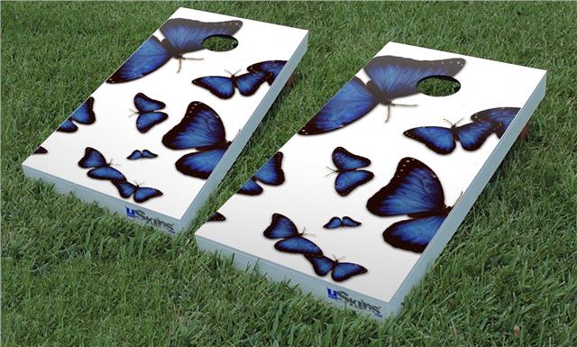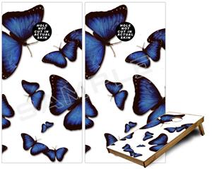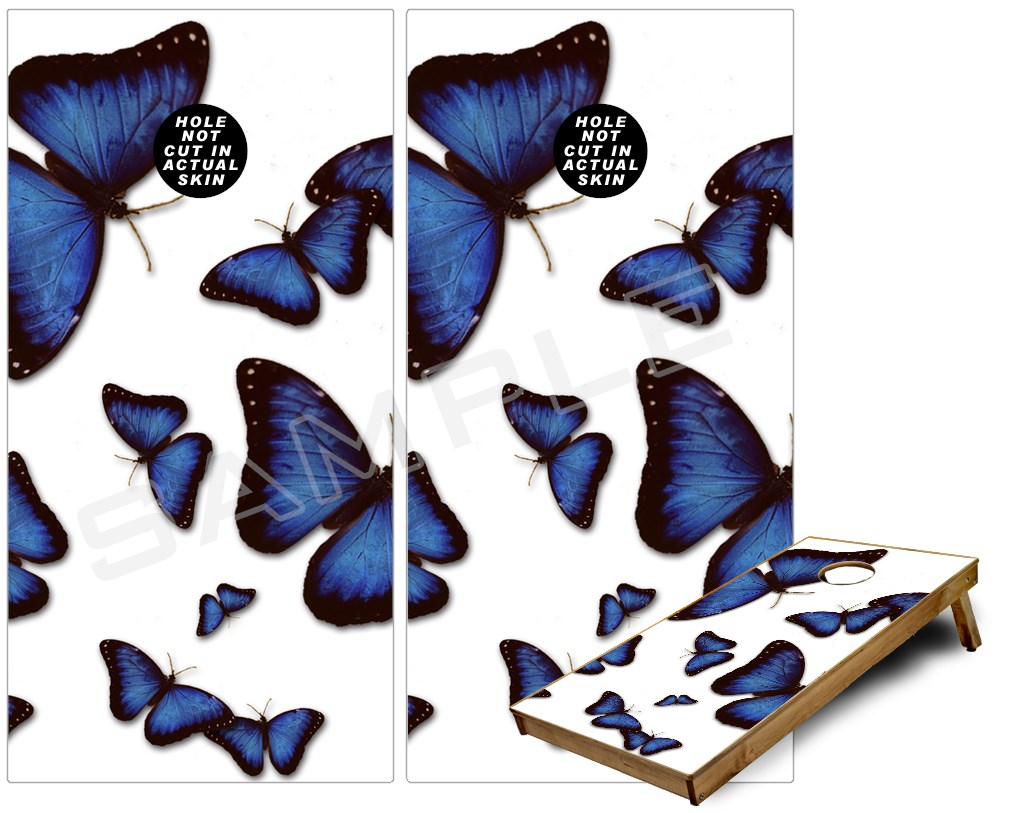 Cornhole Game Board Vinyl Skin Wrap Kit - Butterflies Blue fits 24x48 game boards (GAMEBOARDS NOT INCLUDED)