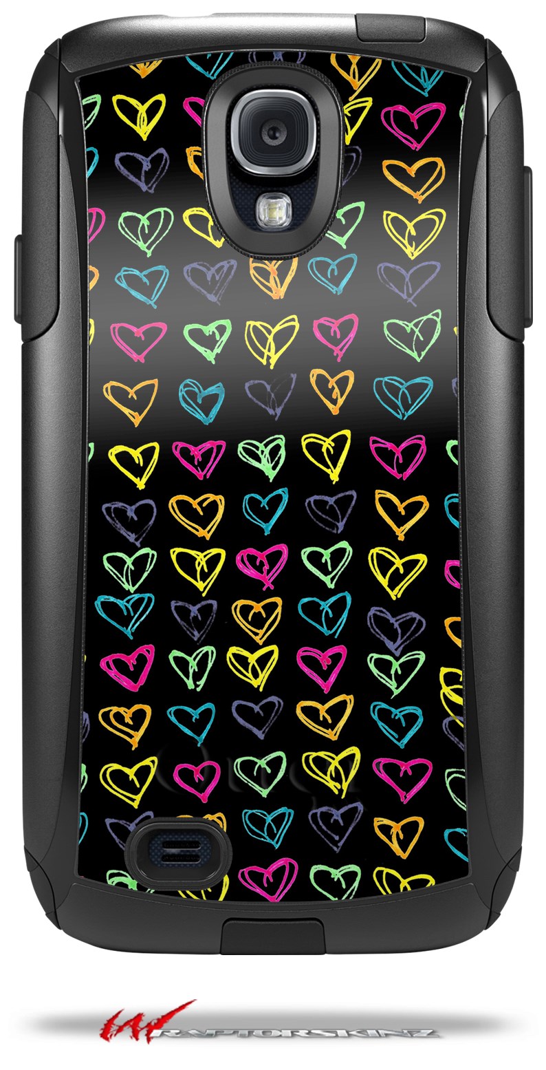Kearas Hearts Black - Decal Style Vinyl Skin fits Otterbox Commuter Case for Samsung Galaxy S4 (CASE SOLD SEPARATELY)
