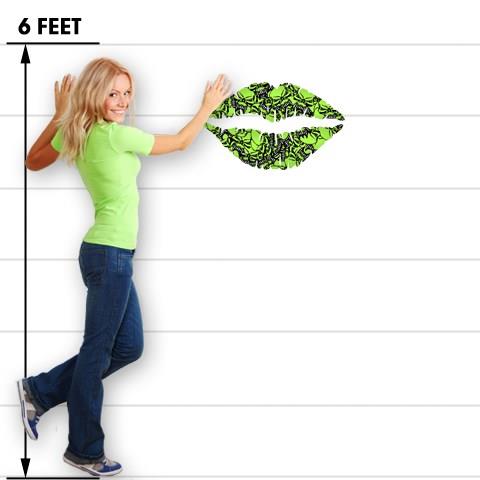 Scattered Skulls Neon Green - Kissing Lips Fabric Wall Skin Decal measures 24x15 inches