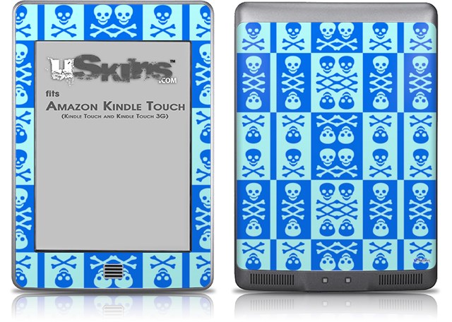 Skull And Crossbones Pattern Blue - Decal Style Skin (fits Amazon Kindle Touch Skin)