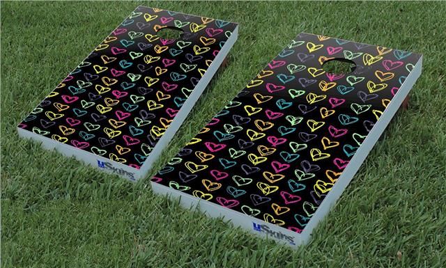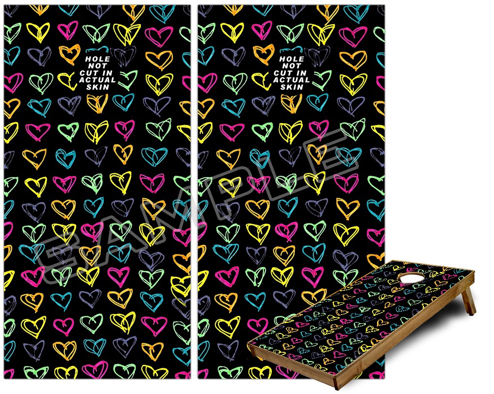 Cornhole Game Board Vinyl Skin Wrap Kit - Kearas Hearts Black fits 24x48 game boards (GAMEBOARDS NOT INCLUDED)