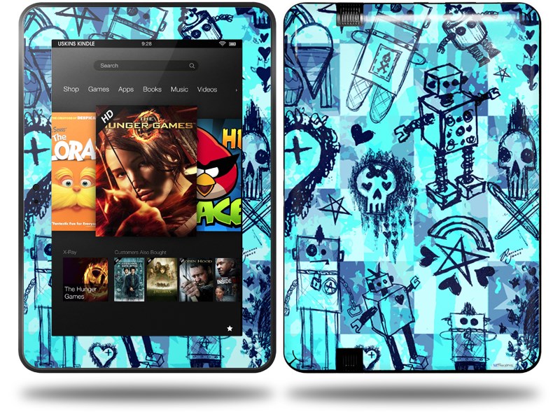 Scene Kid Sketches Blue Decal Style Skin fits Amazon Kindle Fire HD 8.9 inch