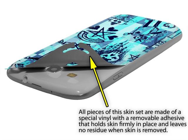 • Decal style vinyl skin covers front and back of Samsung Galaxy S III S3 phone.