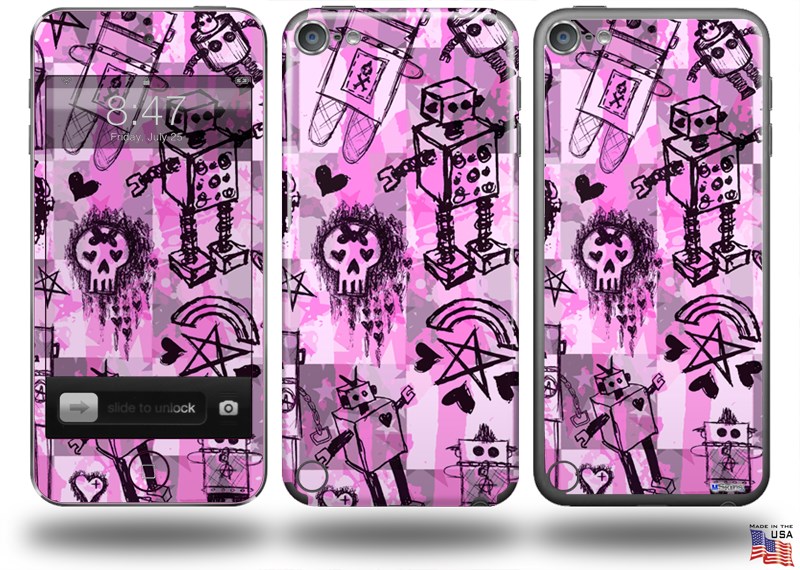 Scene Kid Sketches Pink Decal Style Vinyl Skin - fits Apple iPod Touch 5G (IPOD NOT INCLUDED)