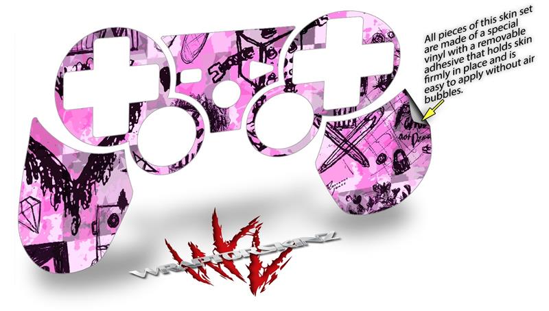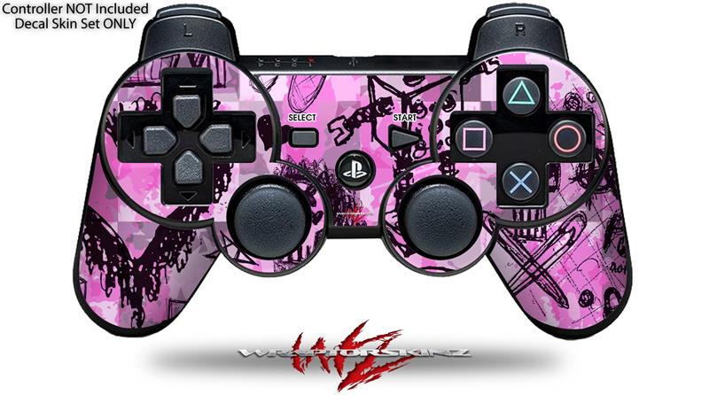 Sony PS3 Controller Decal Style Skin - Scene Kid Sketches Pink (CONTROLLER NOT INCLUDED)